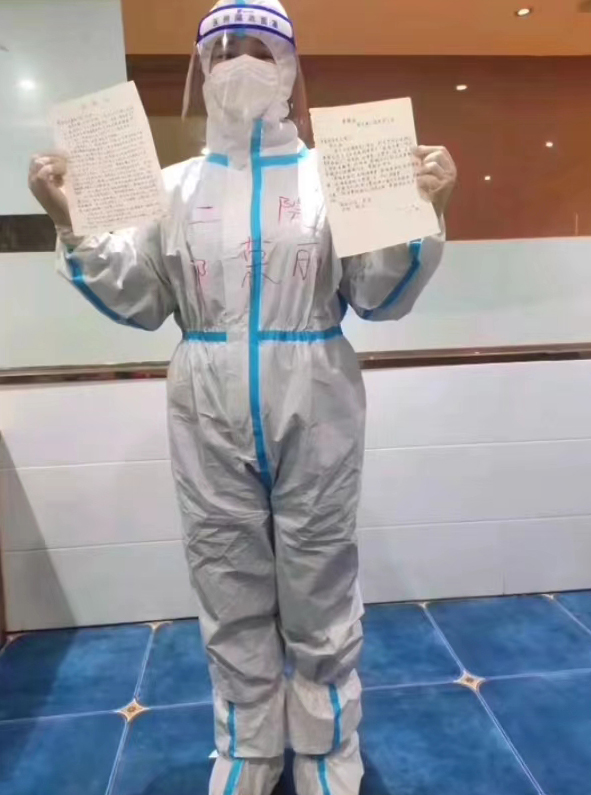 2022年1月太康縣出現(xiàn)確診病例密切接觸者,根據(jù)防控要求,這次需要隔離的人員多為太康第三中學(xué)的學(xué)生,接到通知后的郭榮麗再次投入工作。她看到被隔離的孩子在緊張、恐懼的情緒中還在學(xué)習(xí),她既心痛又欣慰。郭榮麗的兒子和被隔離的孩子同歲,母親了解孩子,她每天都會和這些孩子聊天,了解孩子的心理狀況,解除孩子的恐懼心理,很快孩子們就和她熟悉起來。整個隔離期間,這些孩子有心里話也會告訴郭榮麗。觀察結(jié)束后,孩子們還給她和醫(yī)護團隊寫了一封感謝信,信中說“我想看看您摘掉口罩后的樣子,我想那是天使的模樣”。