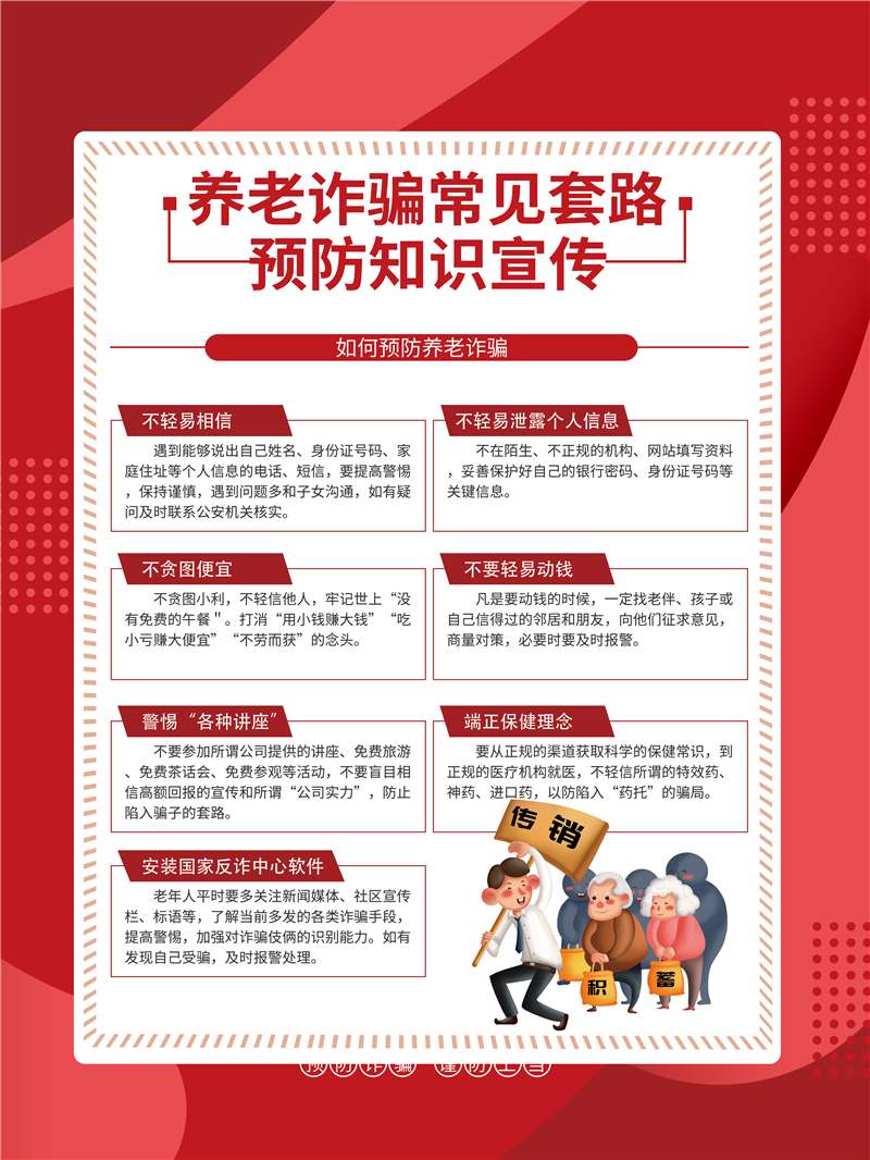 養(yǎng)老詐騙常見(jiàn)套路預(yù)防知識(shí)宣傳
