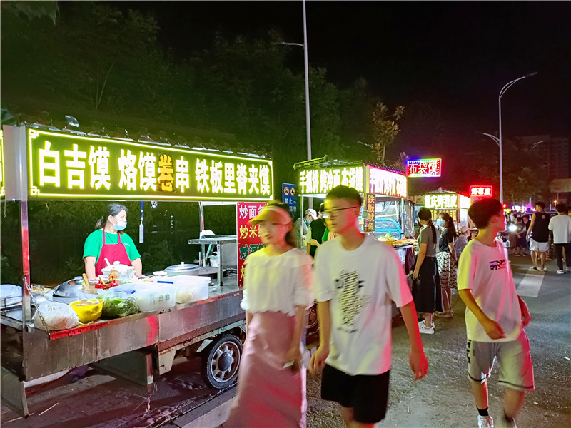 疫情散去,終歸風(fēng)平浪靜。城市夜晚被賦予更斑斕的色彩、更旺盛的生命力,夜消費(fèi)、夜休閑、夜文化在鹿邑市民生活中不可或缺。為進(jìn)一步促進(jìn)“夜經(jīng)濟(jì)”健康發(fā)展,鹿邑縣商務(wù)局、市場(chǎng)監(jiān)管局、城市管理局等有關(guān)部門審慎包容、精準(zhǔn)施策,堅(jiān)持管理和服務(wù)并重,因地制宜,完善城市便民疏導(dǎo)點(diǎn)經(jīng)營秩序,建立臨街餐飲店、夜市小吃外擺準(zhǔn)入機(jī)制。該縣城區(qū)原有8個(gè)便民疏導(dǎo)點(diǎn),經(jīng)過實(shí)地調(diào)查論證,有關(guān)部門又將新近自然形成的3個(gè)商販聚集地設(shè)立為便民疏導(dǎo)點(diǎn)。同時(shí),以個(gè)人申請(qǐng)、實(shí)地調(diào)查的方式對(duì)沿街門店外擺經(jīng)營進(jìn)行放開。