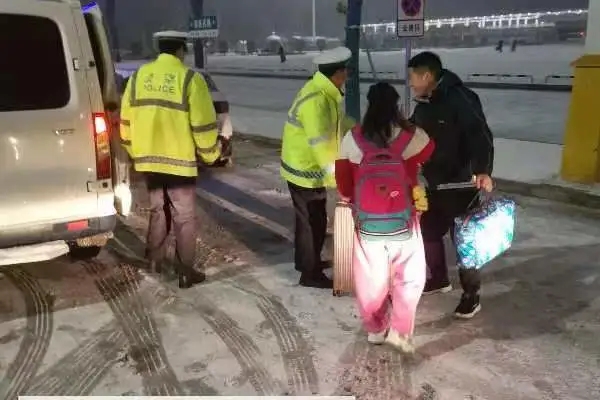 當男子的女兒順利到達高鐵站后,交警們又將他送回原地??吹骄仍藛T已經(jīng)到達,交警們再次投入到雪夜的巡邏中。他們的熒光黃制服與白雪交相輝映,成為雪夜里最溫暖的色彩。②2