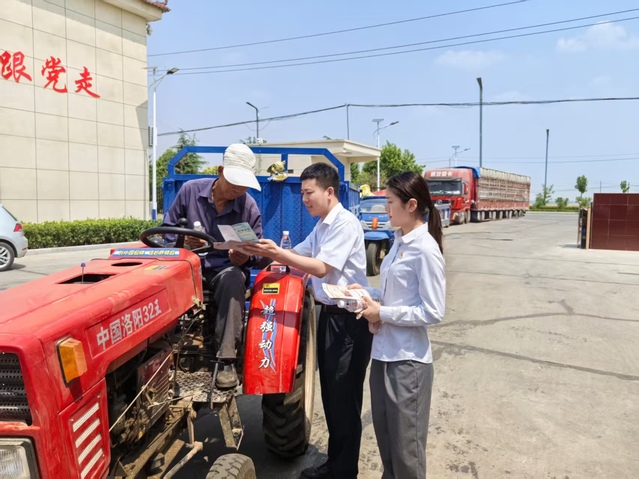 在此基礎(chǔ)上,該行組織志愿者到鄉(xiāng)村合作社和糧食收購站開展送清涼活動,為交糧農(nóng)戶和收購人員送上飲用水,遞上宣傳折頁,向他們講解工商銀行的普惠金融業(yè)務(wù),介紹為農(nóng)村合作社、種糧大戶、糧食收購站量身定制的“種植e貸”“糧食收購貸”等金融產(chǎn)品;為他們宣傳國家金融惠農(nóng)政策,普及反電信詐騙、反假幣知識,切實(shí)守好自身“錢袋子”。
