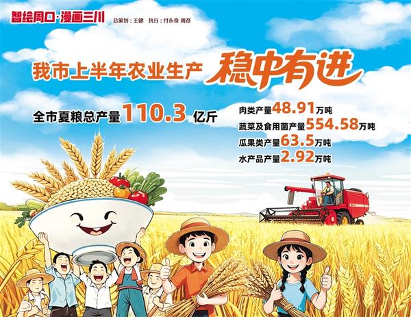 2025年上半年,我市農(nóng)業(yè)生產(chǎn)穩(wěn)中有進(jìn)。全市夏糧總產(chǎn)量110.3 億斤,同比增長(zhǎng)0.01%,980.1萬(wàn)畝秋糧長(zhǎng)勢(shì)良好,豐收豐產(chǎn)基礎(chǔ)扎實(shí);肉類(lèi)產(chǎn)量48.91萬(wàn)噸,同比增長(zhǎng)3.19%;蔬菜及食用菌產(chǎn)量554.58萬(wàn)噸,同比增長(zhǎng)3.28%;瓜果類(lèi)產(chǎn)量63.5萬(wàn)噸,同比增長(zhǎng)3.73%; 水產(chǎn)品產(chǎn)量2.92萬(wàn)噸,同比增長(zhǎng)4.2%。記者 付永奇 周彥 文/圖