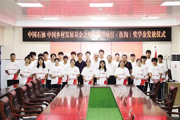 8月12日,中國石油 中國鄉(xiāng)村發(fā)展基金會旭航助學(xué)項目獎學(xué)金發(fā)放儀式在扶溝縣高級中學(xué)舉行。活動現(xiàn)場,30名品學(xué)兼優(yōu)的學(xué)子共獲15萬元愛心獎學(xué)金。旭航助學(xué)項目是中國石油與中國鄉(xiāng)村發(fā)展基金會攜手發(fā)起的專注于教育領(lǐng)域的公益項目,旨在為家庭困難的高中生提供助學(xué)金和獎學(xué)金,幫助他們完成學(xué)業(yè),實現(xiàn)求學(xué)夢想。圖為活動現(xiàn)場。記者 金月全