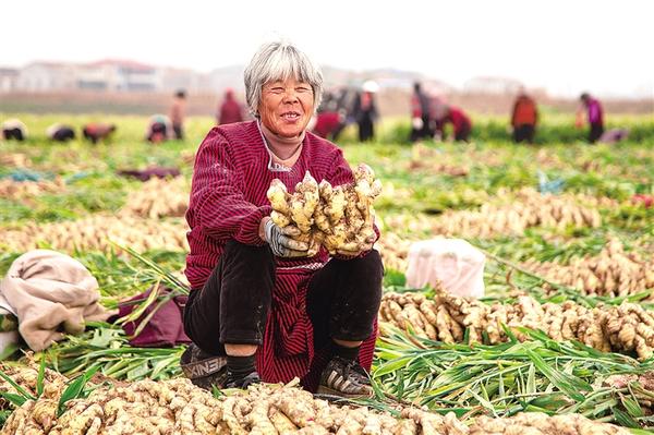 11月16日,淮陽區(qū)曹河鄉(xiāng)朱莊行政村的農(nóng)戶們忙著采收、分揀、搬運飽滿肥碩的生姜。該村四百余畝生姜迎來豐收,預計畝產(chǎn)超萬斤,將為當?shù)剞r(nóng)戶帶來可觀收益。