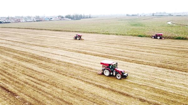 ?10月14日,市城鄉(xiāng)一體化示范區(qū)許灣街道孔莊村村民在田間耕作。連日陰雨暫歇,農(nóng)戶(hù)們利用晴好天氣,與時(shí)間賽跑,抓緊秋播。