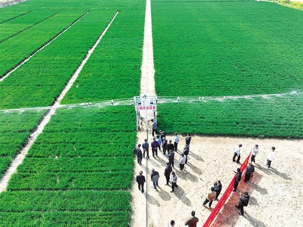 設施農(nóng)業(yè)看泛區(qū)。近日,黃泛區(qū)農(nóng)場一企業(yè)自主研發(fā)的小型自走式澆地機備受種植大戶關注。