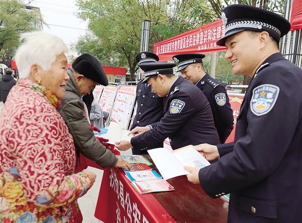 民警向群眾發(fā)放宣傳資料。2024年12月1日~12月7日是第七個(gè)“憲法宣傳周”。為大力弘揚(yáng)憲法精神,營(yíng)造崇尚憲法、學(xué)習(xí)憲法、宣傳憲法、遵守憲法、維護(hù)憲法的濃厚氛圍,連日來,扶溝縣公安局積極組織民警到大程文化廣場(chǎng)開展集中宣傳活動(dòng)。