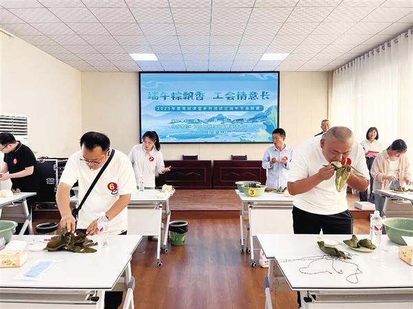 為豐富職工精神文化生活,營造文明和諧、健康向上的氛圍,端午節(jié)前夕,商水縣總工會(huì)、縣新時(shí)代文明實(shí)踐服務(wù)中心聯(lián)合舉辦“同享端午、共品粽香”主題活動(dòng)。圖為選手進(jìn)行吃粽子比賽。