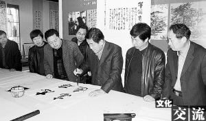 本報訊(記者 竇娜 王晨 文/圖)近日,周口·敦煌兩地書法家交流筆會在周口華威民俗博物苑舉行。來自敦煌的書法家代表邊振國、姜生治、傅有宏、丁永明等,與我市書法家代表王猛仁、劉廣巖、張華中、曹景超等20余人共敘兩地書法淵源,交流切磋書藝,共謀兩地書法發(fā)展。