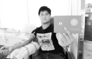 6月14日,一名參加無償獻(xiàn)血的河北保定市民在展示他的無償獻(xiàn)血證。當(dāng)日是世界獻(xiàn)血者日,全國多地開展主題活動(dòng),向市民普及無償獻(xiàn)血的意義,并號(hào)召市民無償獻(xiàn)血、奉獻(xiàn)愛心。新華社記者 朱旭東 攝
